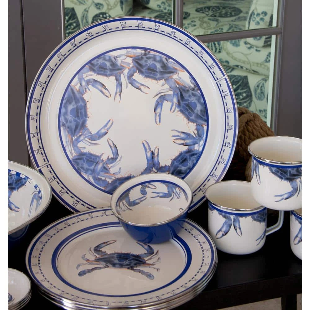 S/2 12.5 inch Charger. This enamelware is made of carbon steel coated with a porcelain enamel and trimmed in stainless steel. There will be variations in the shading of colors and pattern formations which are the results of the hand-dipped process. The swirl design is a classic, retro staple for enamelware cookware and serveware. The contrast of colors creates a distinct look and brings a casual artistic flair to your table setting. Each piece is individually hand crafted and is as unique as you are. Skilled artisans hand dip the white background color, then use a brush to hand apply the secondary color swirls. This creates a unique piece and design each time. The elegant and inviting aesthetic draws the eyes into the many spattered patterns flowing throughout. Your piece will be one-of-a-kind and exclusive to you as you create your own distinctive style.