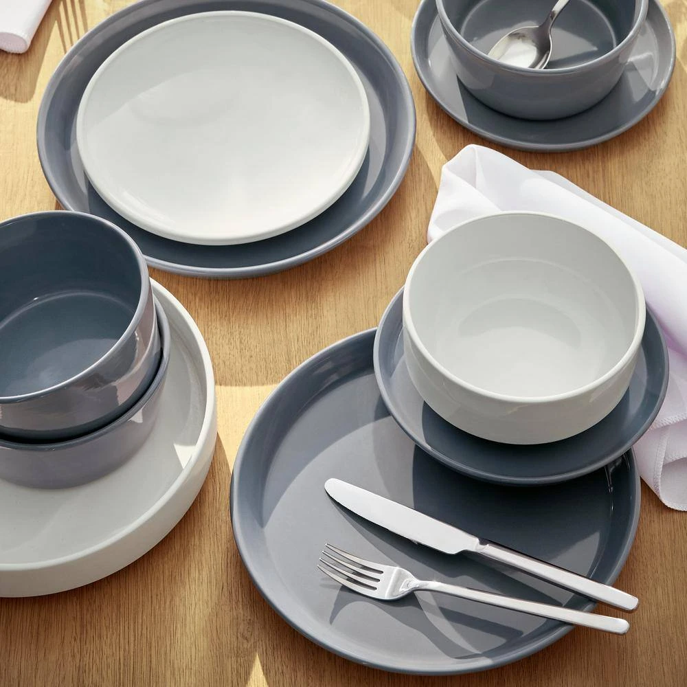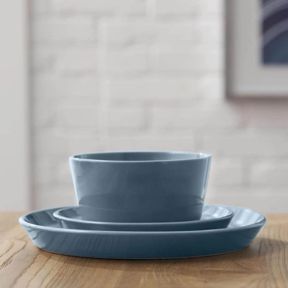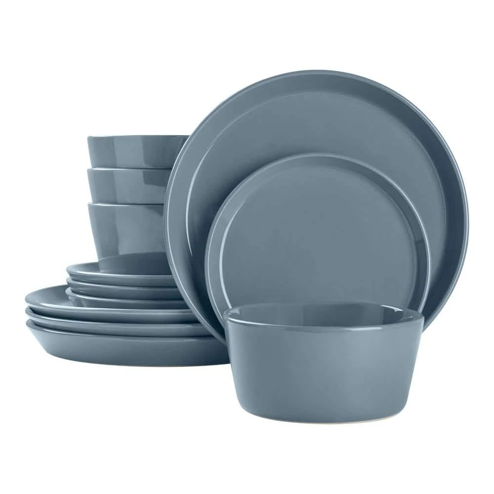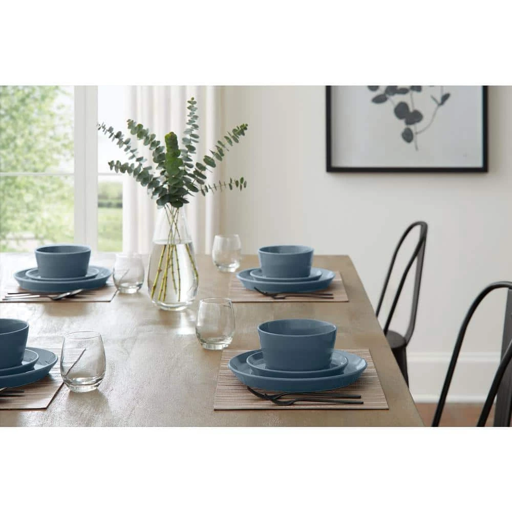 Set the table with this StyleWell 12-piece Coupe Stoneware Dinner Set in Steel Blue. The stoneware construction supports use in the microwave and dishwasher for lasting use and easy cleanup, while the glossy Steel Blue finish provides a pop of fun color to your modern dining setup. Including a dinner place, salad plate and cereal bowl for up to four settings, this StyleWell 12-piece Coupe Stoneware Dinner Set in Steel Blue lets you enjoy meals with beloved friends and family.