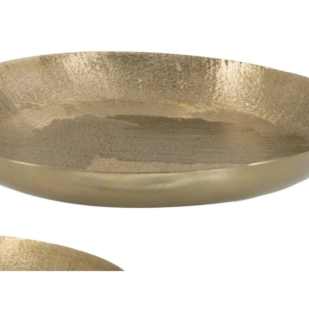 This duo of aluminum round plates in a gold suede finish give a modern touch to any tabletop. Crafted with an eye for simple, understated design, they feature a long and sloping edge that is welcoming in every sense. They make for a great entryway accent or key bowl on star-power surfaces throughout the home.