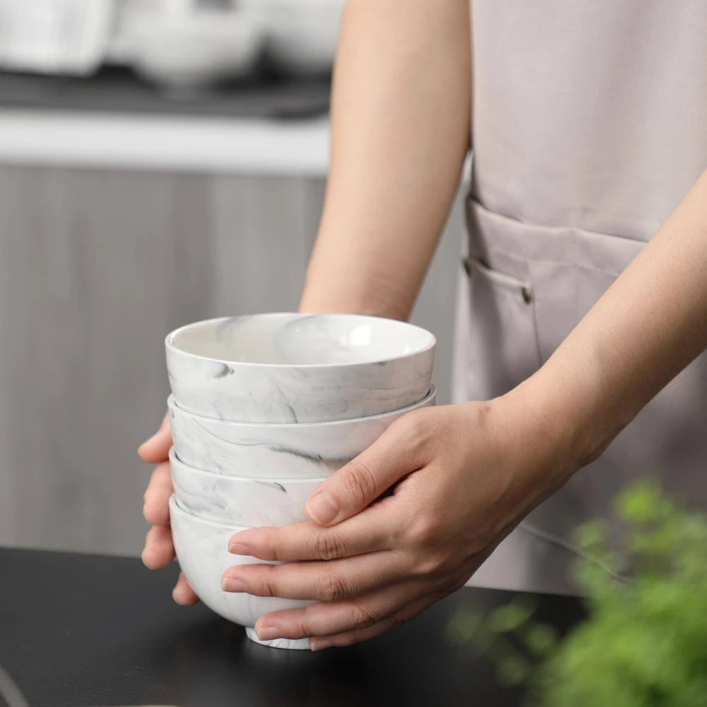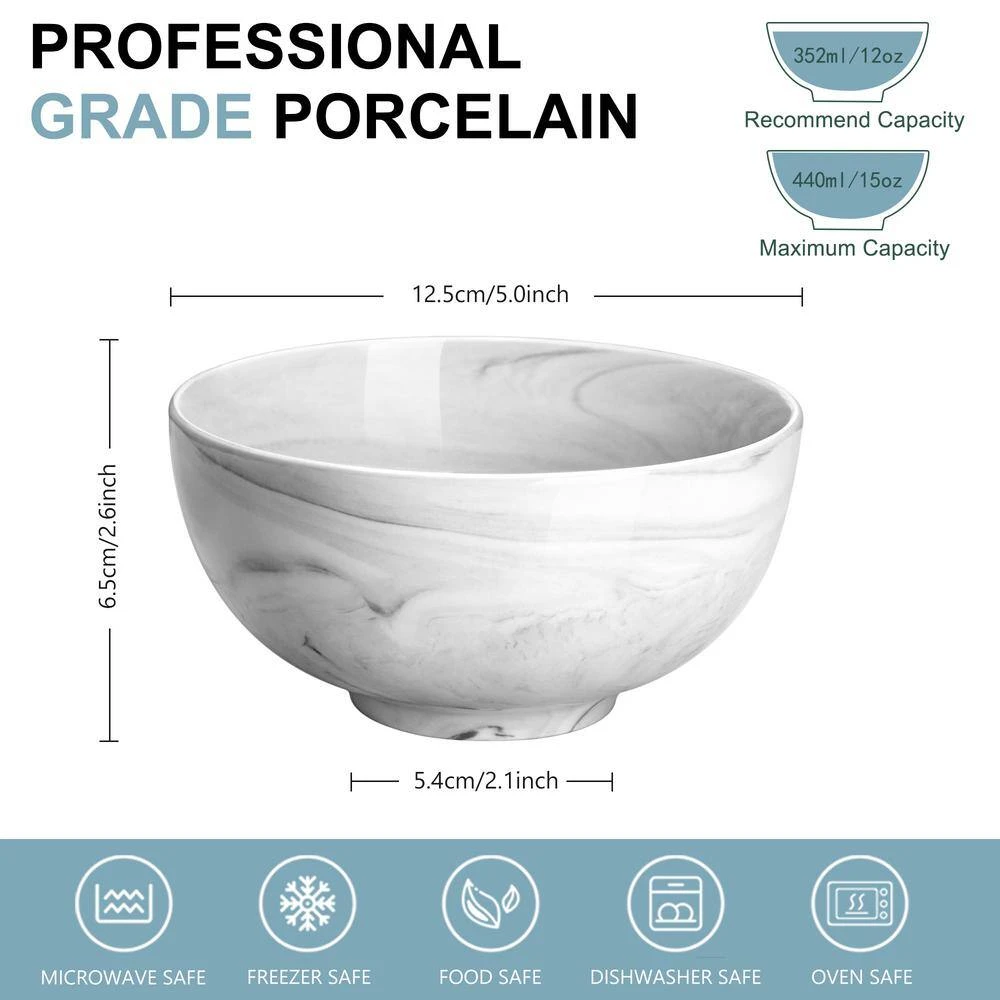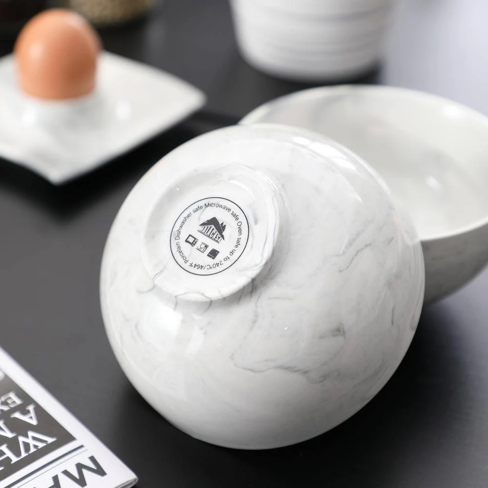 The bowl set impresses with its unique design with marble porcelain in a round shape. Ideal for preparing delicious muesli, fruit, serving rice and pasta.The new designed marble grey tone and classic round shape design make great all-purpose restaurant style cereal bowl.