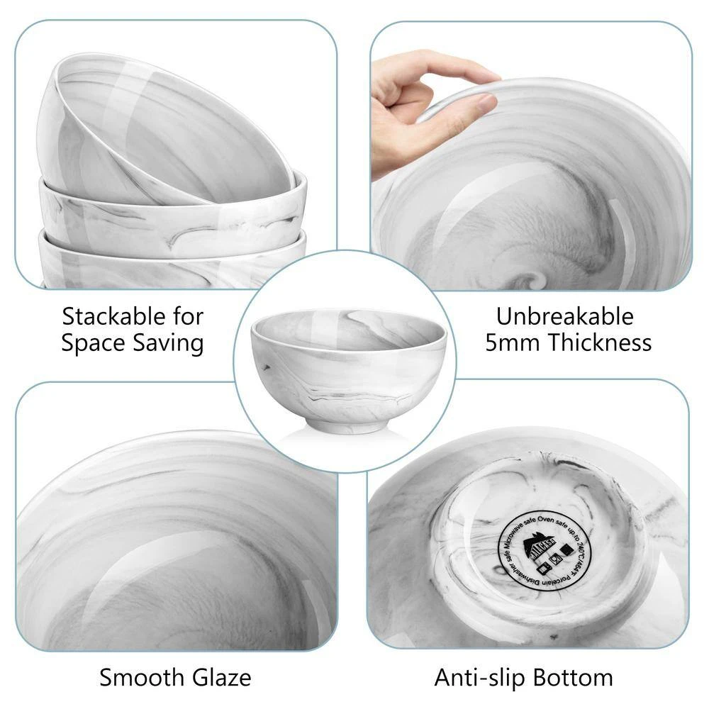 - New designed marble grey tone and classic round shape design make great all-purpose restaurant style cereal bowl