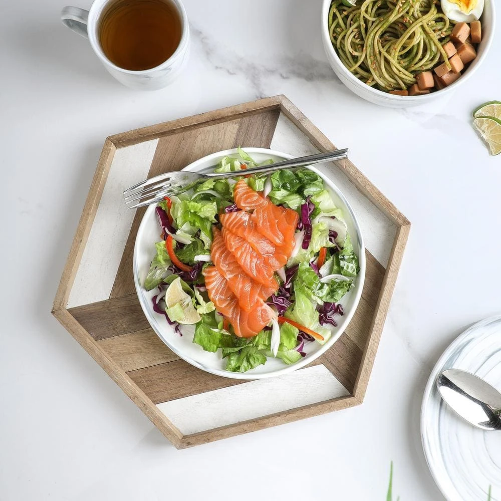 - Material: porcelain – expertly crafted round porcelain, gray wavy marble design, has a natural shape for a modern and organic look and feel