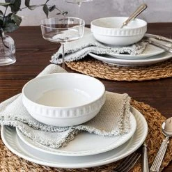 The Florian porcelain dinnerware set is perfect for those wanting a glam vibe in their kitchen or home. This STONE LAIN 32-Piece porcelain round dish set features a gold accent. The dishes are perfect for anyone who wants to feel sleek, sophisticated, or even edgy and will work nicely for both formal and casual dining. This round set includes 8 large round dinner plates, 8 classy round salad plates, 8 deep round bowls and 8 rounded 12 oz. mugs. Pair this set with your favorite cutlery and cups and you are ready to plate your food for a fun dining experience. Florian is dishwasher safe for easy cleaning. Grab a set (or three.) today and experience elegant dining, at home.