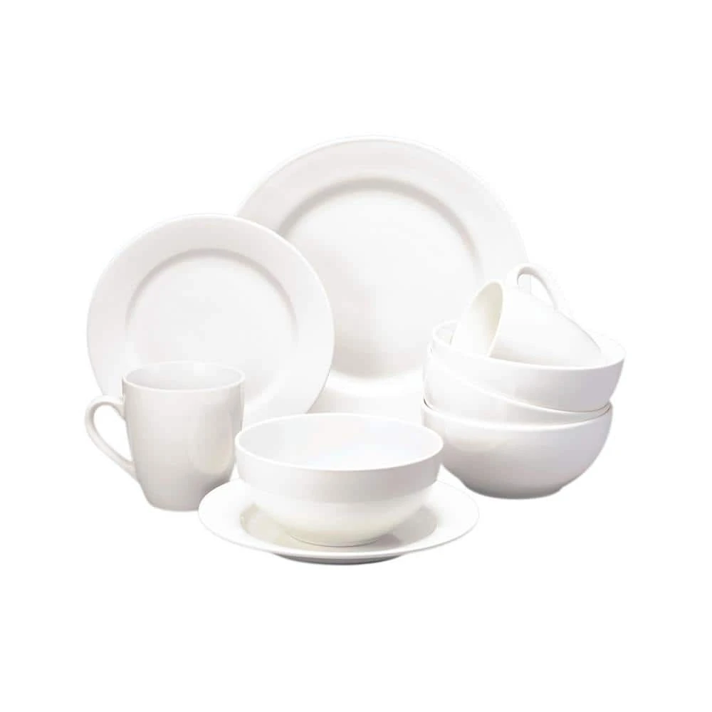 Its basic rimmed shape work well for both traditional and modern decoration. Keep it simple by mixing in matching bowls and mugs set from the same Basic White collection. Perfect backdrop for your culinary creations.