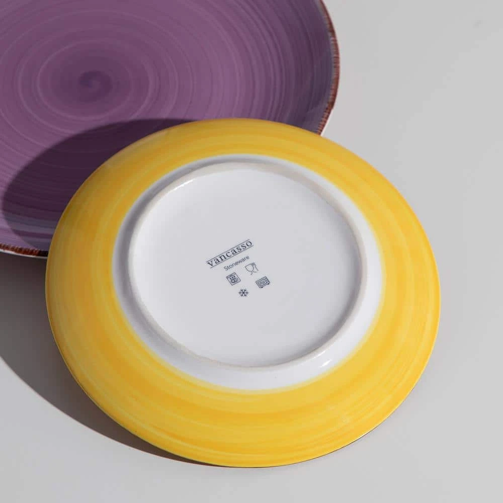 - Set includes 6 each of 10.5 in. Dinner plates, 7.5 in. Dessert plates and reverse soup plates(bowls)