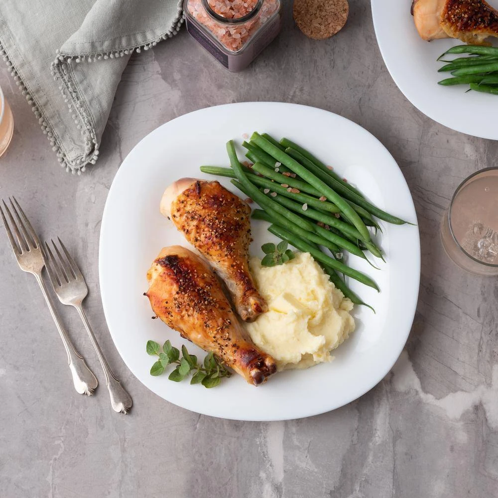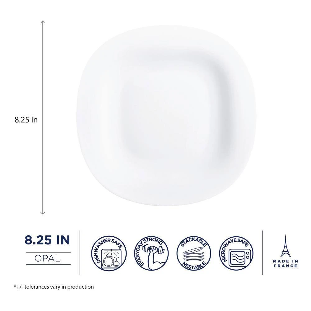 When it comes to sophisticated style, it’s all in black and white with our Carine dinnerware collection. The Carine White 10.5″ Dinner Plate is a modern classic with its softly rounded square edges. The plates’ wide rims and recessed centers make it easy to serve and enjoy even the sauciest of foods. Long-lasting durability and stylish contemporary design make this everyday dinnerware set perfect for any table setting. For an eye-catching presentation, mix and match the black and white pieces. Easy to clean, non-porous, lightweight, chip-resistant and stackable, Luminarc dinnerware brings beauty and functionality to your home. This set includes 6 – 10.5″ White Carine Dinner Plates. Country of Origin: France Material: Opal Glass Tempered Glass Chip Resistant Dishwasher Safe Microwave Safe Stackable Lightweight Easy to Clean Non-porous