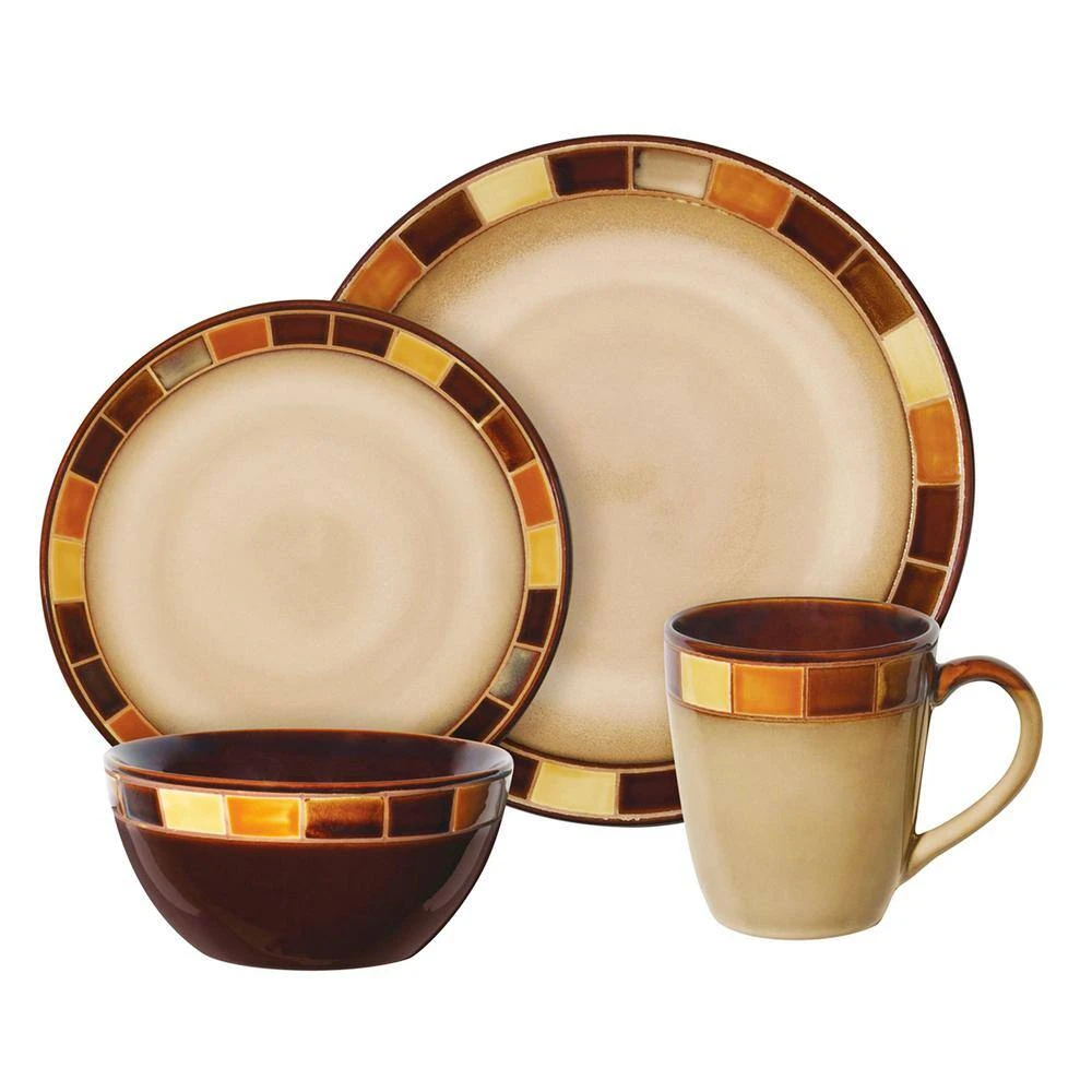 Accentuate your meals with this picturesque Casa Estebana 16-Piece Dinnerware Set by Gibson. This set features a colorful tiled rim added to a beautiful reactive glaze finish. This charming set is perfect for festivities or cozy gathering around the table.