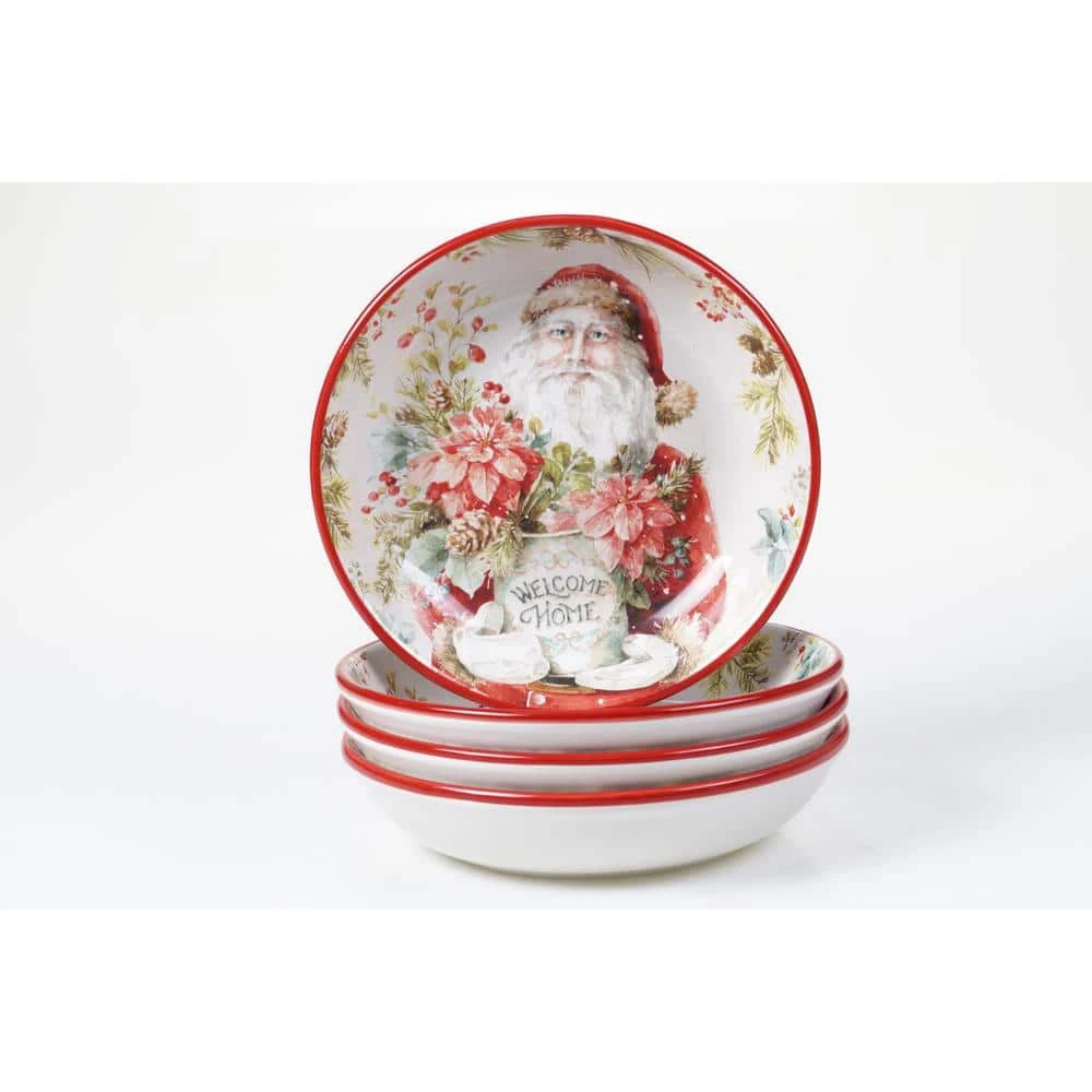 Enjoy the holidays with Certified International’s ” A Christmas Story” ceramic dinnerware and serveware collection from beautiful watercolor art by Lisa Audit. Featuring scenes of vintage Santas accented by red poinsettias and berries, these pieces can become the centerpiece of your family holiday traditions. The decorative yet functional 3-d Santa cookie jar, S and P set and poinsettia candy plate complete this lovely collection.