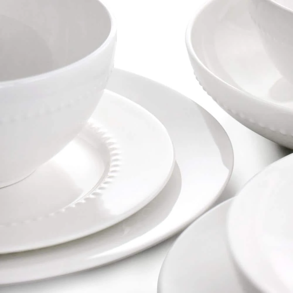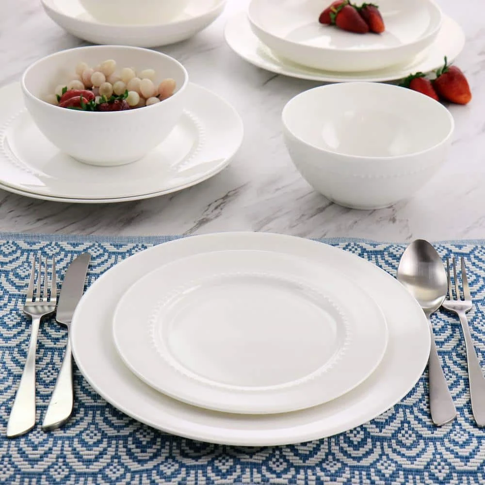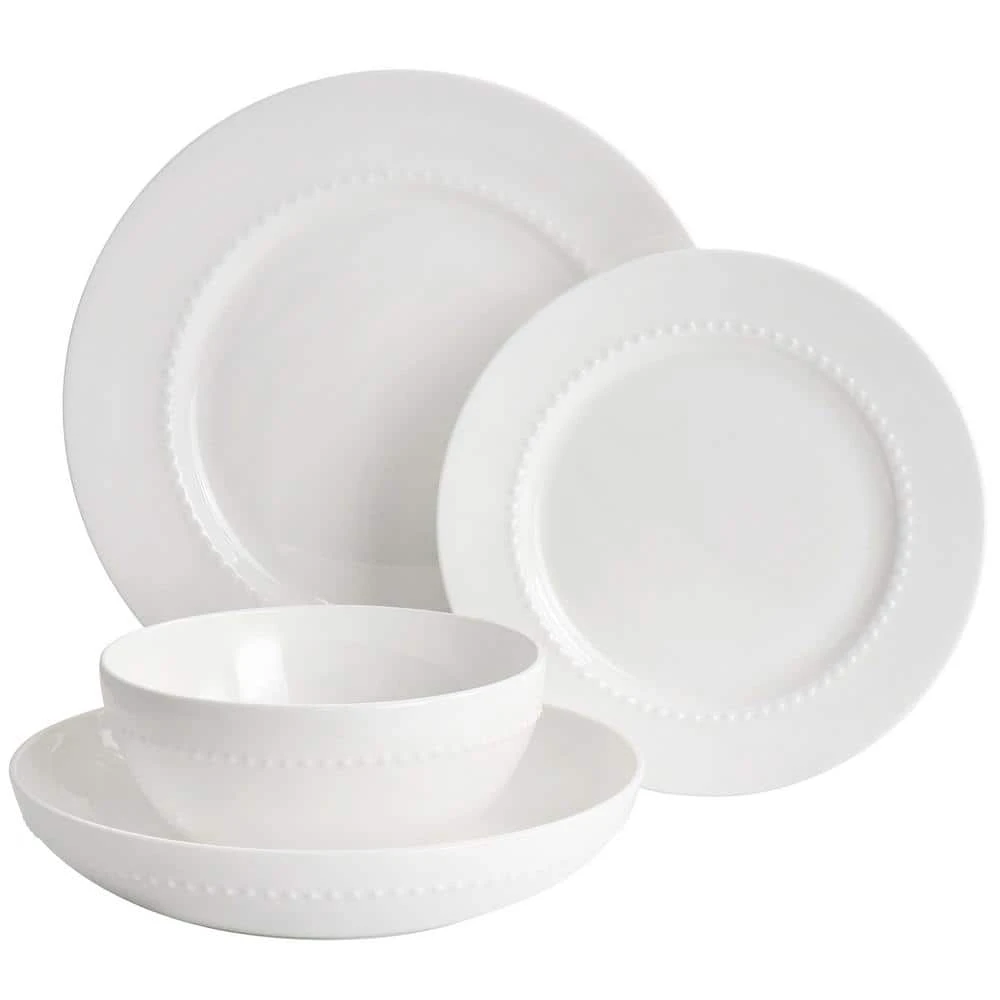 - Set Includes: Four 10.75in dinner plates, Four 8.3in salad plates, Four 32oz dinner bowls, Four 24oz cereal bowls