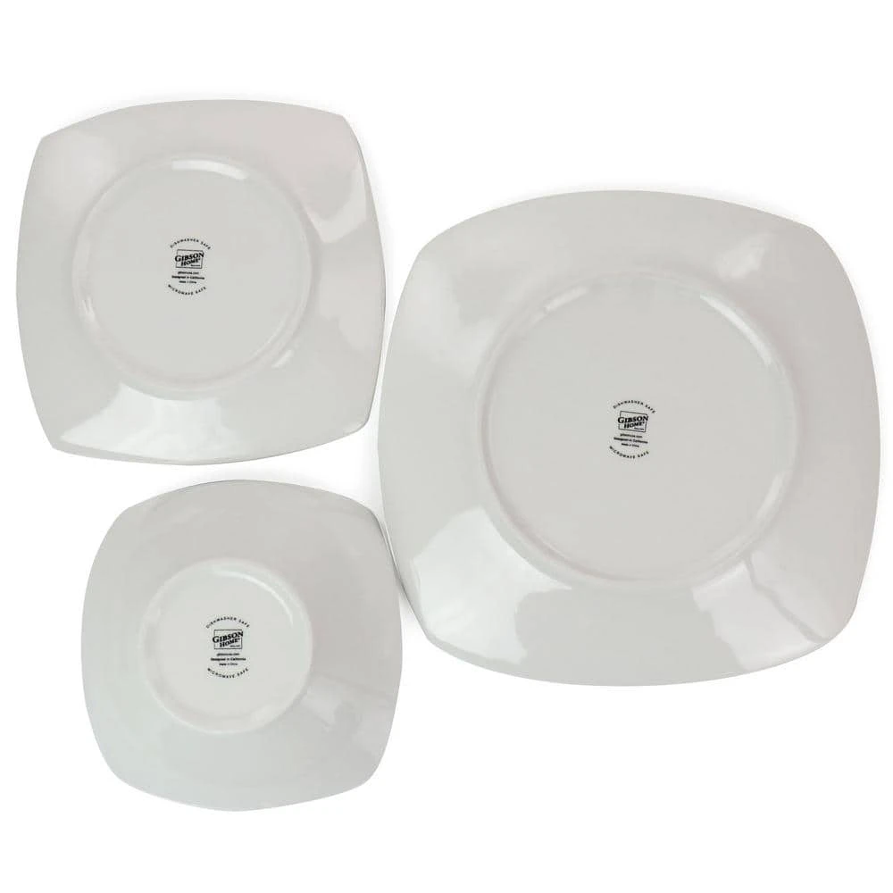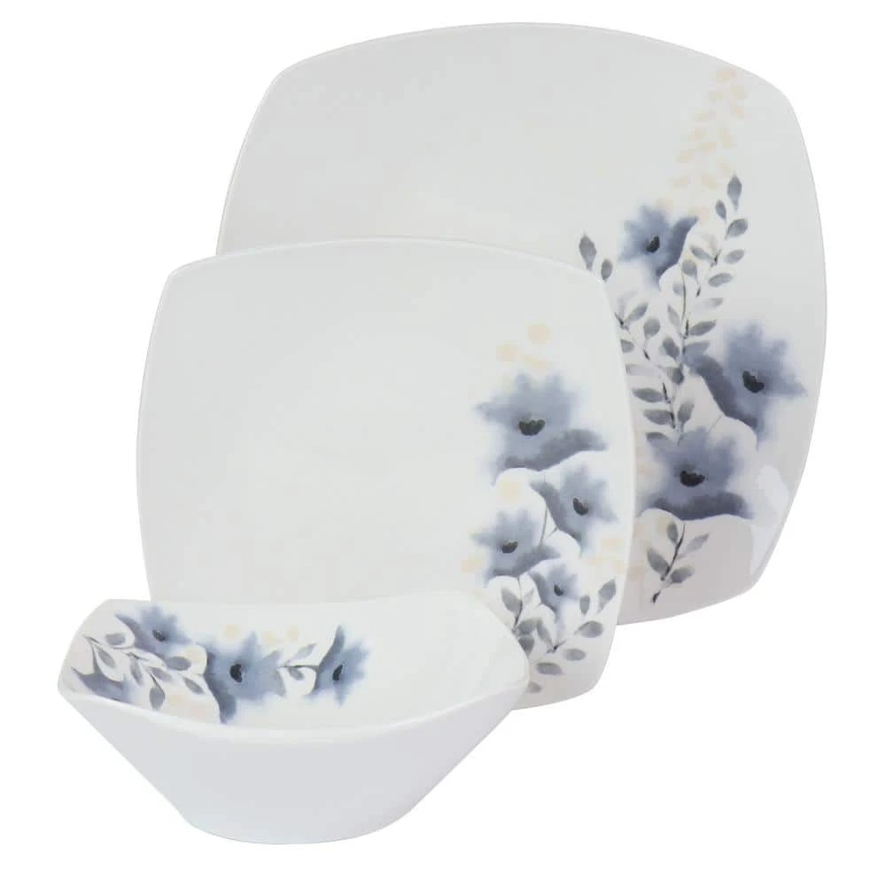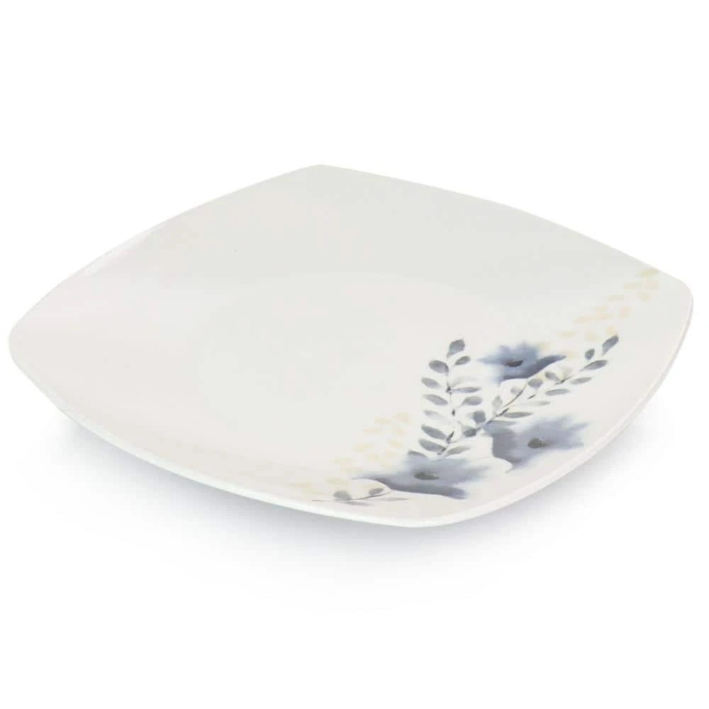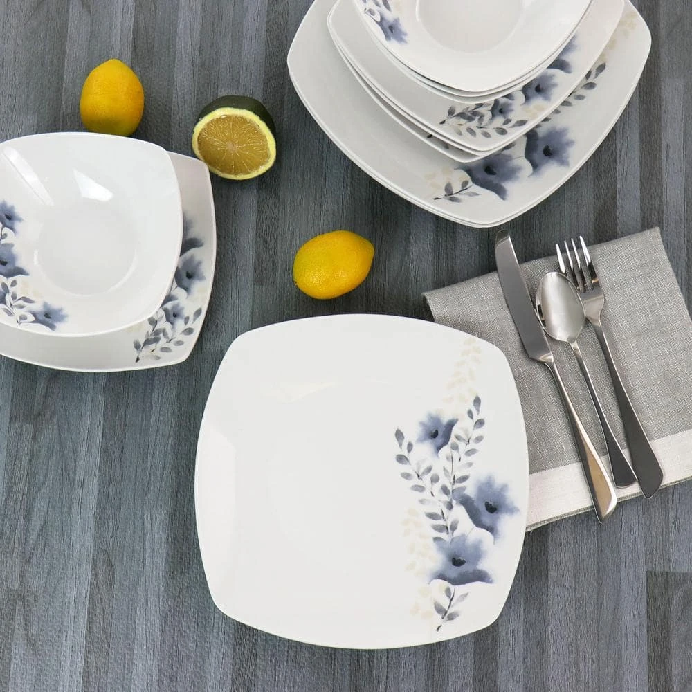 The Gibson Home Evening Orchid 12 Piece Fine Ceramic Dinnerware set is a floral extravaganza that will draw the crowd to the dinner table. The fine ceramic dishes showcase an ink wash style plant design over a white base color. These plates are dishwasher safe. for easy cleaning and microwave safe for convenient reheating. Their soft square shape efficiently holds sauces and juices while perfectly framing meals. Serve with this set for any occasion, from casual lunches to formal dinners.