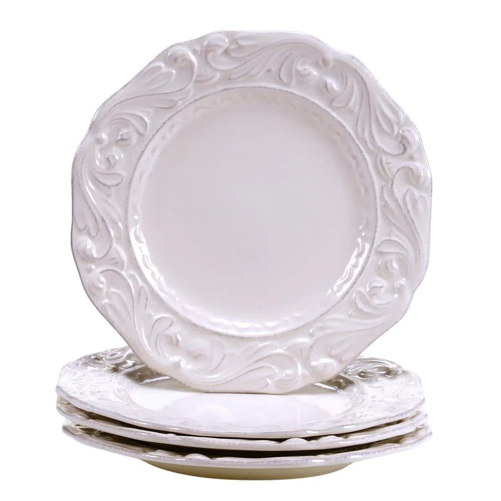 The Firenze Ivory Salad/Dessert Plate Set from Certified International will create a striking table setting. The scalloped edges and sculpted accents are sure to capture attention. The classy style and design will add elegance to your table for years to come. Durable earthenware