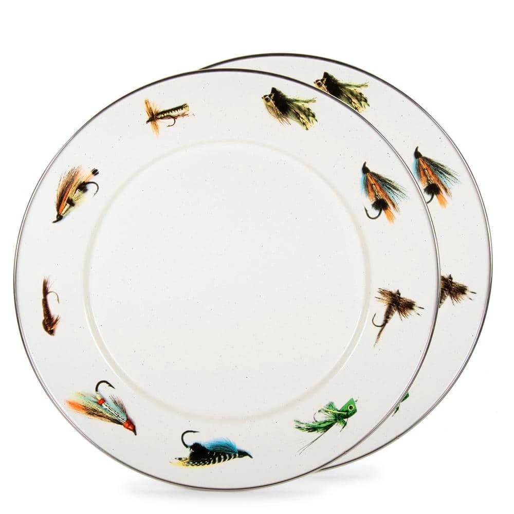 This is a 12.5 in. Chargers (set of 2). This Enamelware is made of carbon steel coated with a porcelain enamel and trimmed in stainless steel. There will be variations in the shading of colors and pattern formations which are the results of the hand-dipped process.