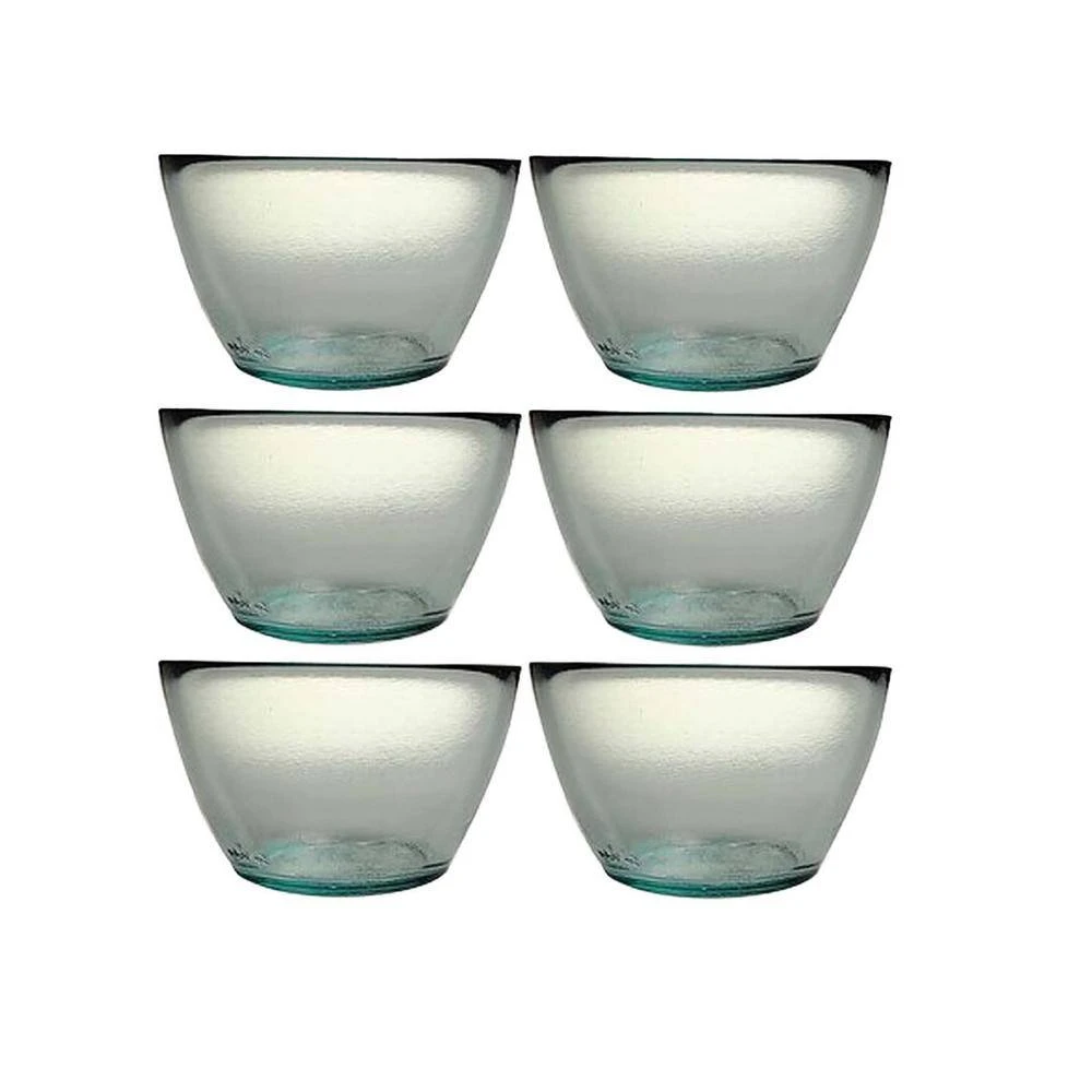 Serve hearty and delicious soups with French Home’s set of 6 vintage recycled glass 3.5 in. high and 5.5 in. wide soup bowls. The sleek retro design featuring vintage inspired textured glass is ideal for casual meals or for entertaining and special occasion use. These stunning soup bowls are clear with a subtle green tint due to the recycling glass process. A cool vintage logo for this eco-friendly soup bowl is displayed on the bottom of this piece. French Home glassware is sturdy, durable, and handmade in Valencia Spain. Ideal for delicious soups and stews as well as gelato, gazpacho, parfaits, acai bowls, and more.