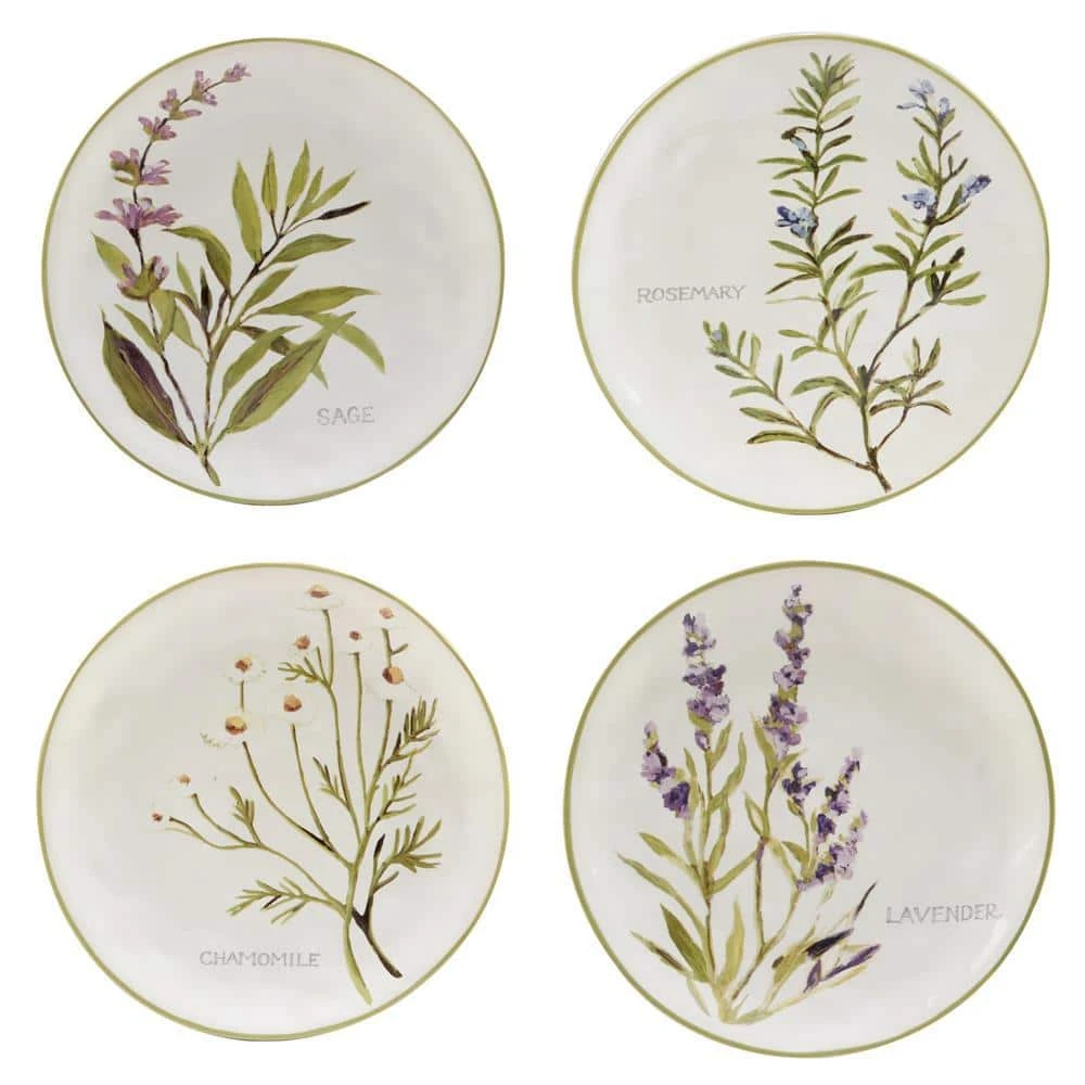 Beautiful green herbs with colorful accents decorate Certified International’s “Fresh Herbs ” 16 Pc. Dinnerware Set designed by the popular artist Susan Winget. Culinary and aromatic herbs such as sage, rosemary, chamomile and lavender adorn these 4 – 4 pc. place settings of mix and match ceramic dinner and dessert plates, mugs and bowls. The salads, mugs and bowls have 4 assorted decors to add even more spice to your table.