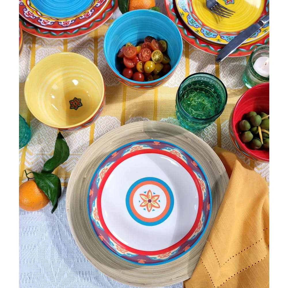 The Euro Ceramica Galicia 4 Piece 40 oz. Pasta Bowl Set includes four assorted bowls with Turquoise, Plum, Yellow, and Red interiors. The eccentric coloring of the Galicia design is reminiscent of the vivid natured colors appreciated in the Iberian Peninsula region, of which the design acquired its name. Each individual piece conveying an artistic and compelling presentation. Create your dream getaway table scape with the Galicia Collection – a full range of accessories will help you elevate that table to perfection. Full Collection includes (each sold separately): 16 Piece Dinnerware Set, Dinner Plate Set, Salad Plate Set, Pasta Bowl Set, Mug Set, Oval Platter, Cereal bowl set, 3 piece mixing bowl set, 4 Piece Accessory set, and 3 Piece Canister Set.