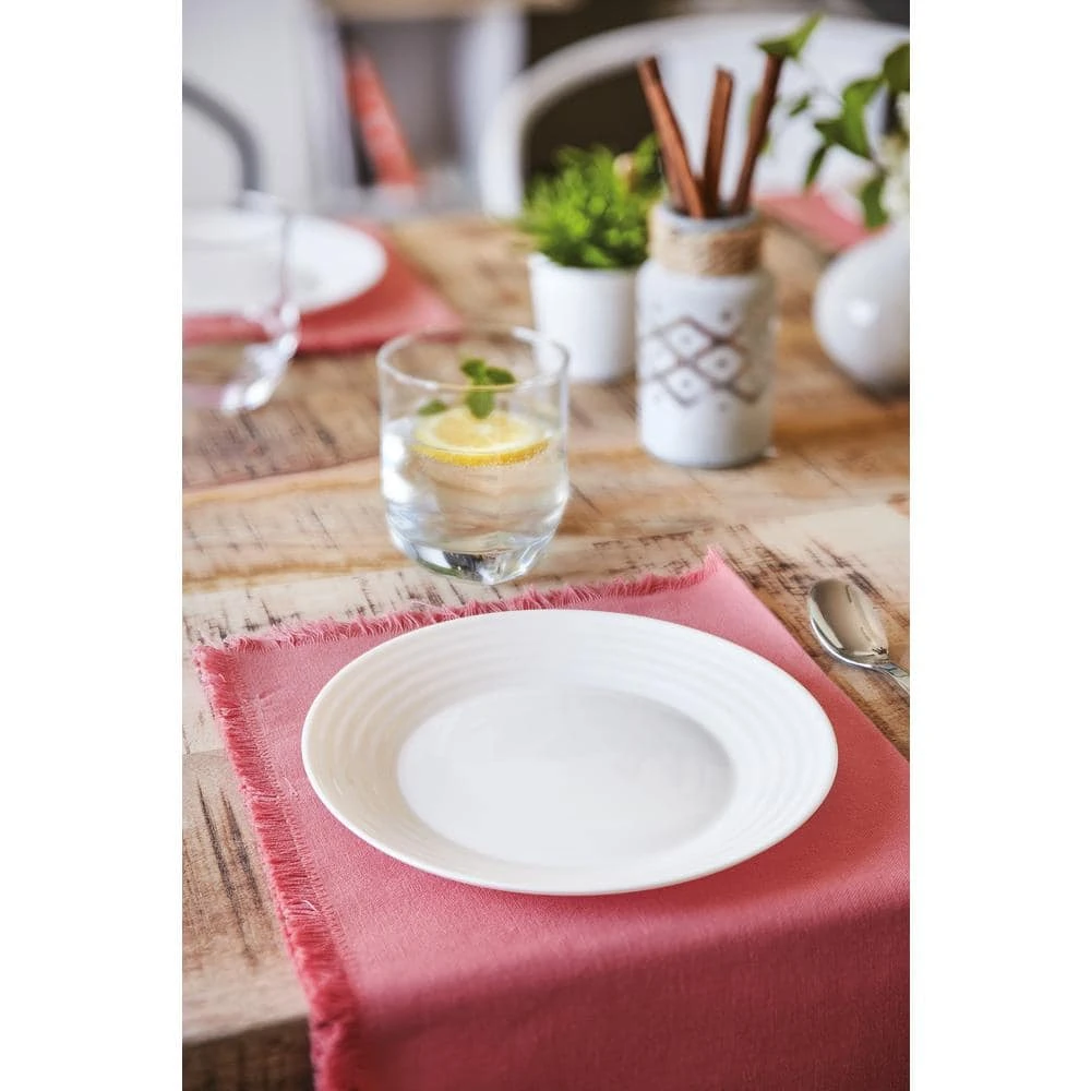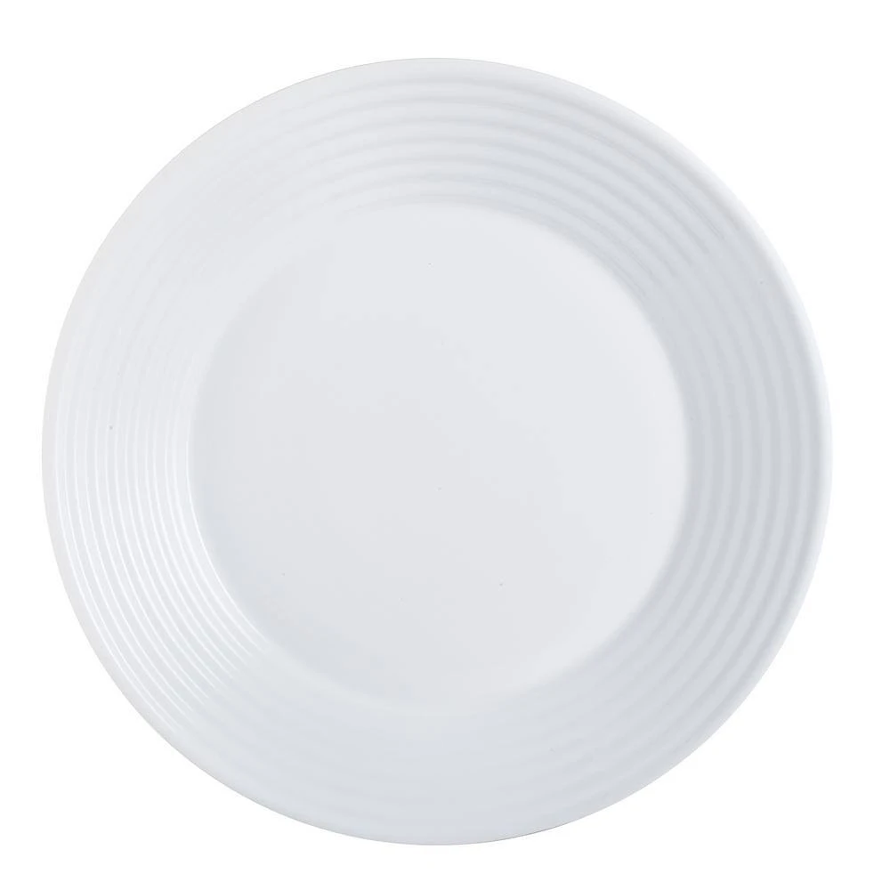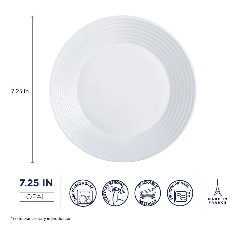 The Harena 7.25″ Dessert Plate is sleek and simple. Its contemporary design consists of circular rings extending out towards the rim. Durable white opal and tempered treatment will satisfy the demands of everyday family life. Easy to clean, non-porous, lightweight, chip-resistant and stackable, Luminarc dinnerware brings beauty and functionality to your home. This set includes 6 – 7.25″ Harena Dessert Plates. Country of Origin: France Material: Opal Glass Tempered Glass Chip Resistant Dishwasher Safe Microwave Safe Stackable Lightweight Easy to Clean Non-porous