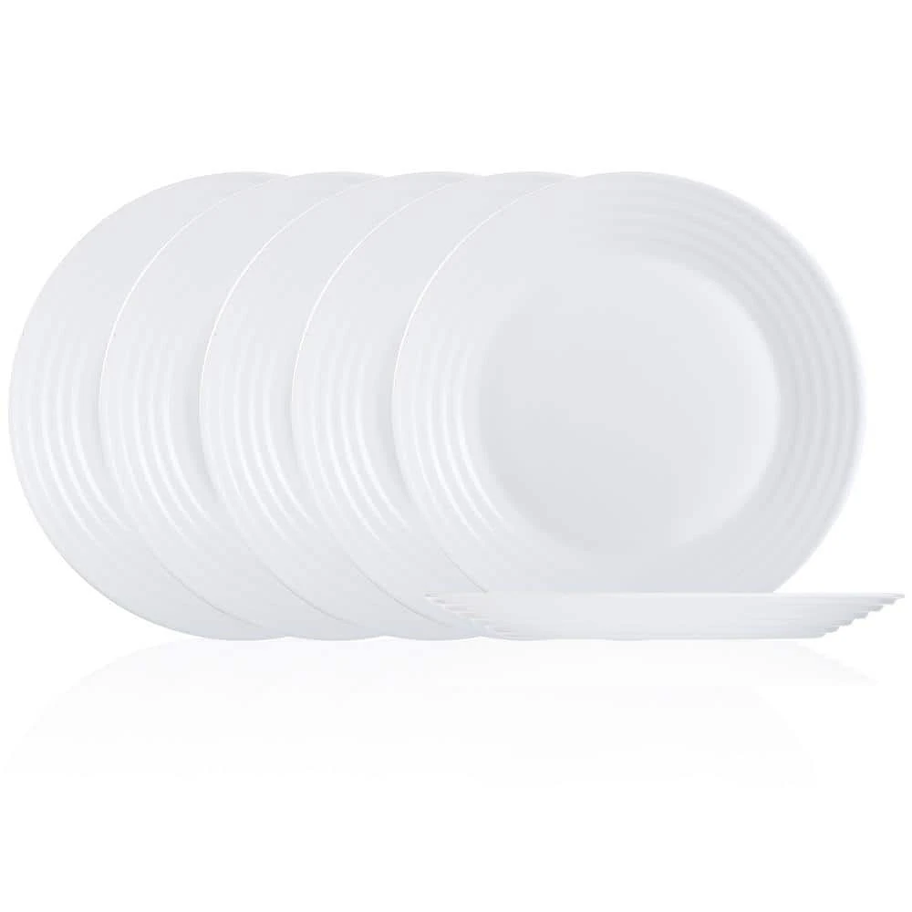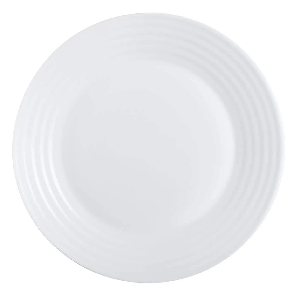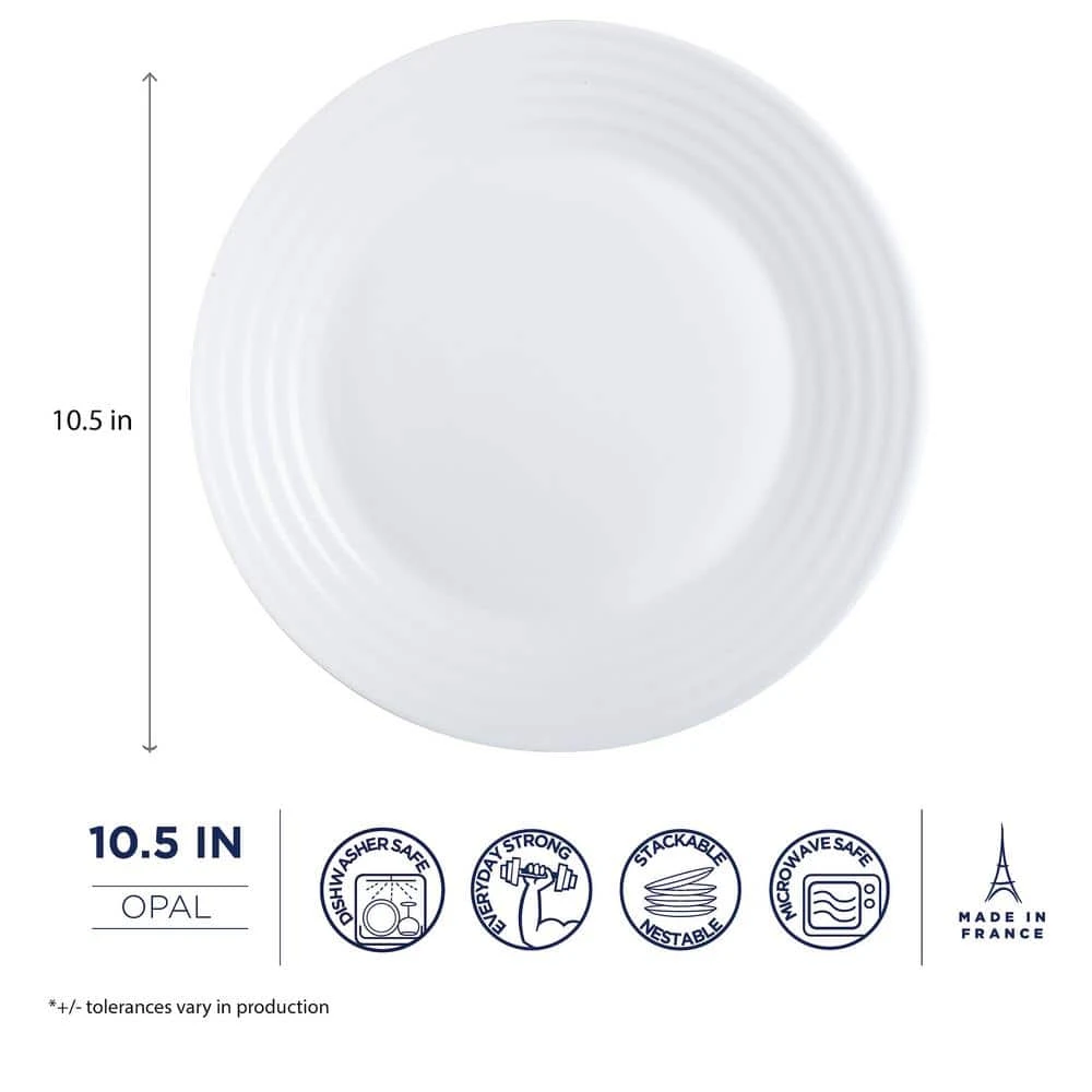 The Harena 10.5″ Dinner Plate is sleek and simple. Its contemporary design consists of circular rings extending out towards the rim. Durable white opal and tempered treatment will satisfy the demands of everyday family life. Easy to clean, non-porous, lightweight, chip-resistant and stackable, Luminarc dinnerware brings beauty and functionality to your home. This set includes 6 – 10.5″ Harena Dinner Plates. Country of Origin: France Material: Opal Glass Tempered Glass Chip Resistant Dishwasher Safe Microwave Safe Stackable Lightweight Easy to Clean Non-porous