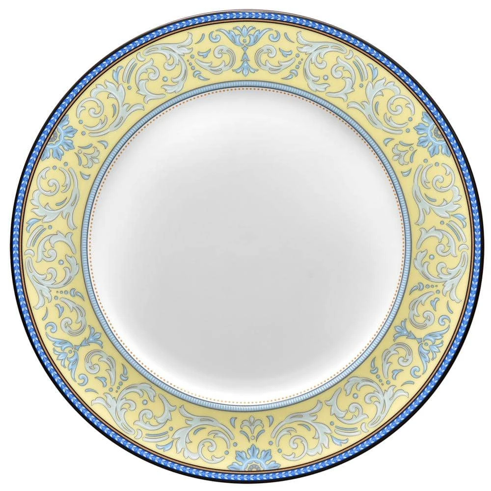 Menorca Palace is inspired by Italian pottery designs from the Renaissance period. This versatile pattern features classic scrolling design elements in yellow and blue. The non-metallic banding on this bone china pattern results in Menorca Palace being both microwave and dishwasher safe.