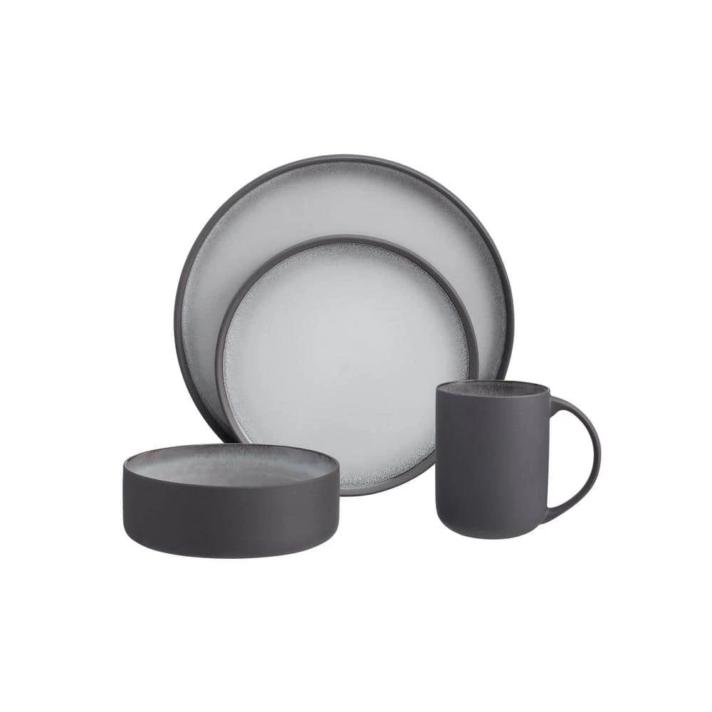Enhance your dining experience with this Pierce 16-piece stoneware dinnerware set. With service for four people, you can use it everyday. This dishwasher and microwave safe set comes with four dinner plates, four salad plates, four cereal bowls, four fruit bowls and four dipping bowls. The rimmed shape and soft, dark grays give it a contemporary look.