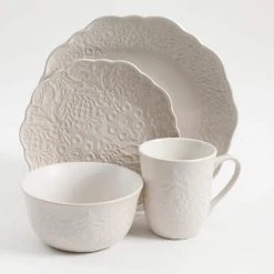 Portina 16-Piece Vintage Linen Stoneware Dinnerware Set (Service for 4) by GIBSON elite