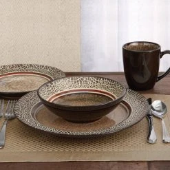 Markham 16-Piece Casual Black/Brown Stone Dinnerware Set (Service for 4) by American Atelier