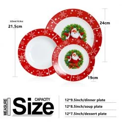 Santaclaus 36-Piece White and Red Porcelain Christmas Dinnerware Set (Service for 12) by VEWEET