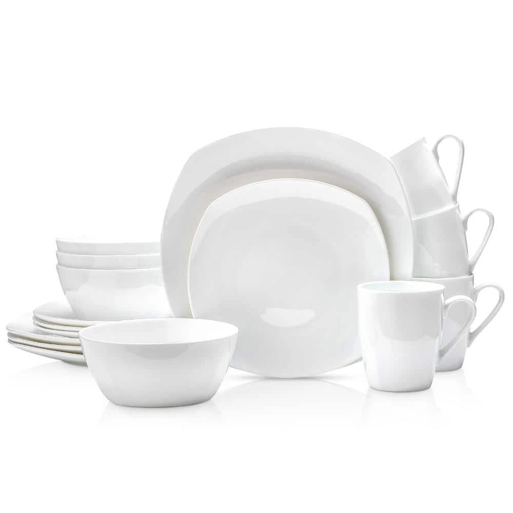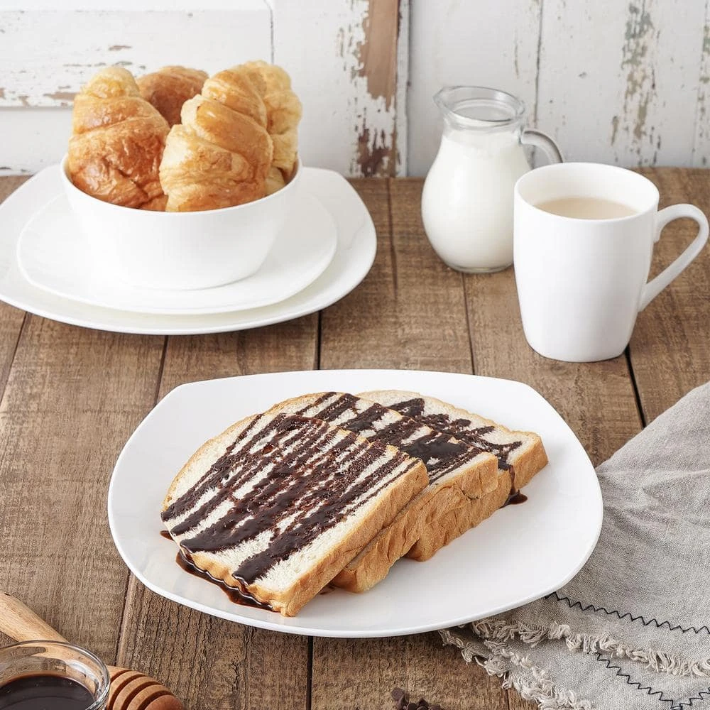 - Classic square shape – each plate, bowl and mug is plain and square, this white dinnerware set has a sense of timeless class perfect for formal or casual dining