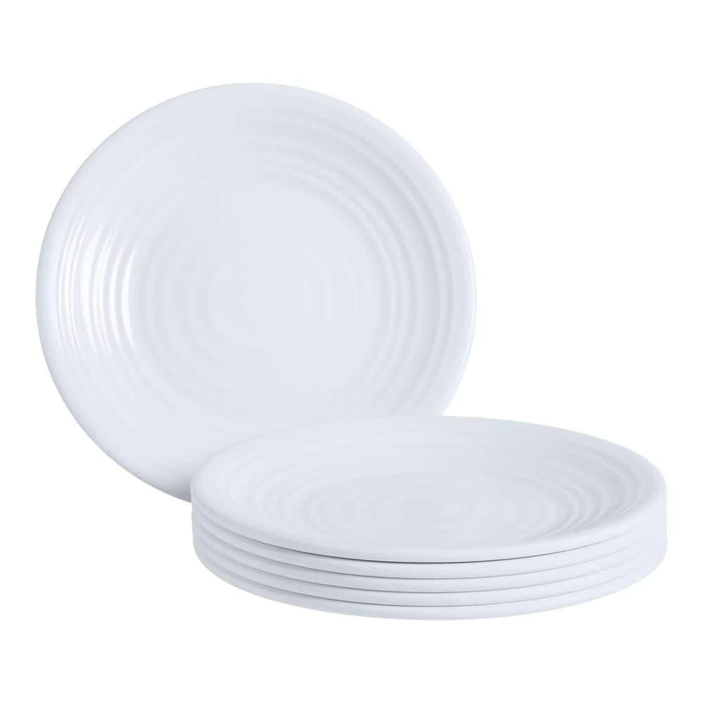 Start off each meal with these White Ribbed Salad Plates by StyleWell’s exclusive Taryn Collection. The crisp white color creates a neutral background to show off the first course, and the ribbed details add a touch of contemporary charm. Dishwasher-safe melamine construction allows for added strength and durability while making post-meal cleanup easy. This set features six plates to complete place settings for family meals or intimate dinner parties. With generous dimensions, these StyleWell ribbed salad plates can be used to serve hot or cold appetizers or extra helpings of your best side dishes.