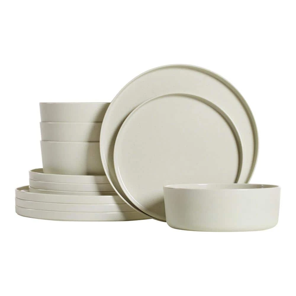- 12-piece coupe dinnerware set in Natural Beige offers sophisticated, modern style for up to four people